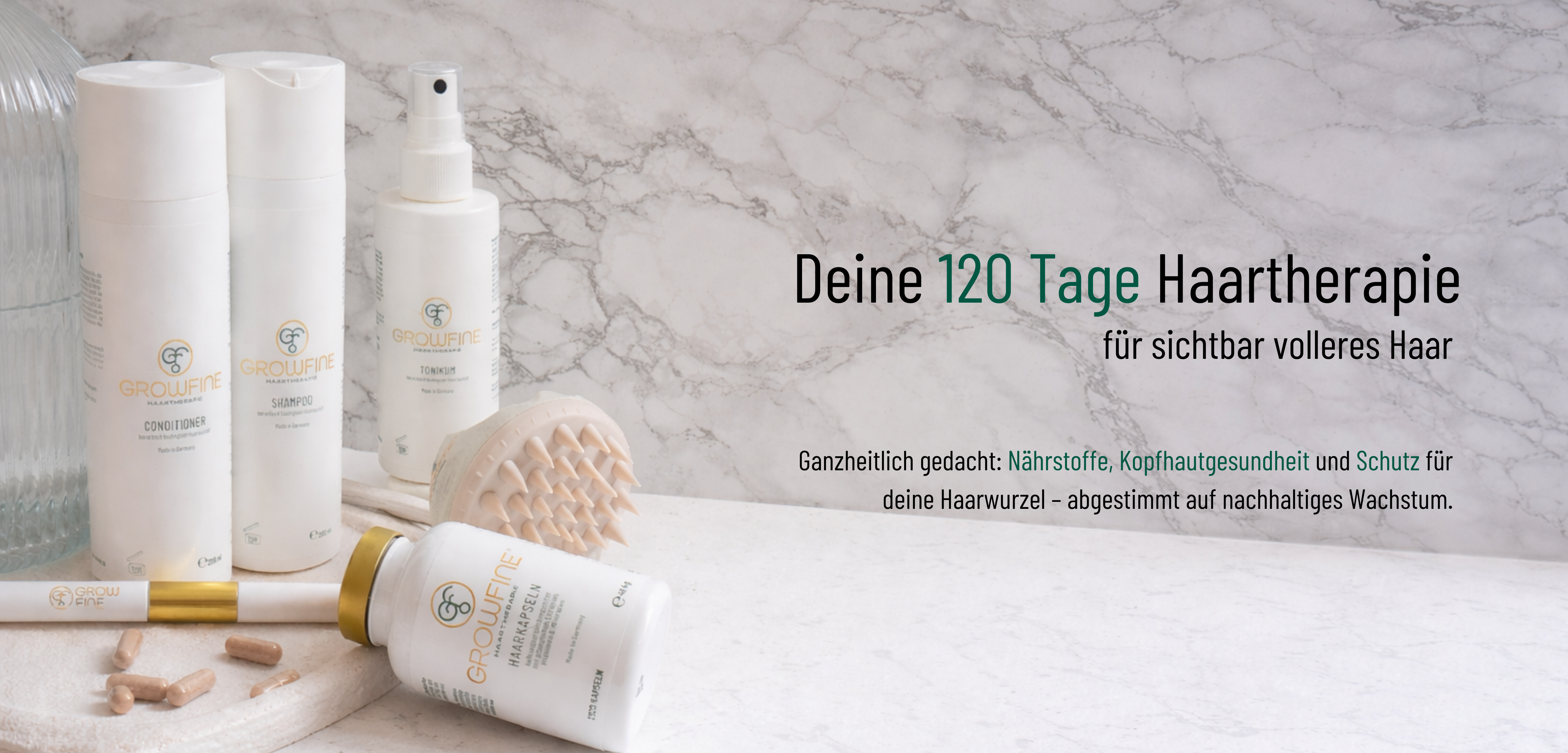Unter Haarausfall und lichten Stellen auf der Kopfhaut leiden sowohl Männer als auch Frauen, denn volles dichtes Haar gilt als Sinnbild für Jugend und Gesundheit. Die Entwicklung einer wirksamen Haartherapie mit einer ganzheitlichen Produktserie, für die äußere und innere Anwendung, war deshalb von Anfang an eine Herzensangelegenheit für uns.