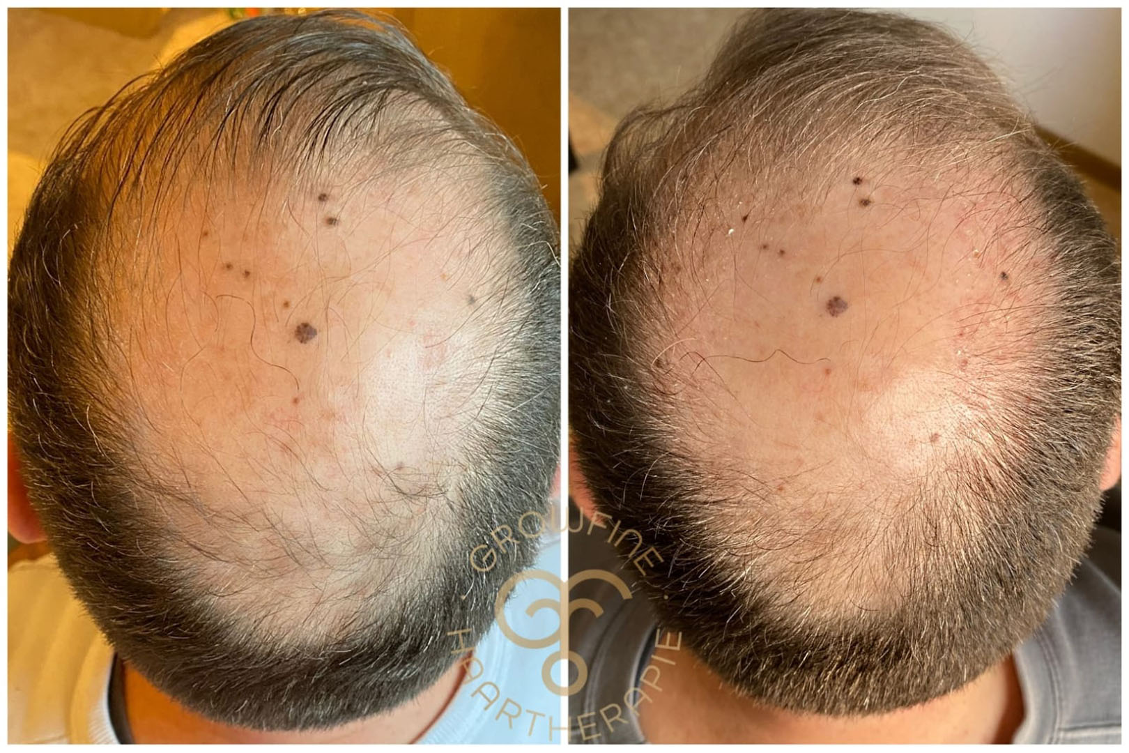 "Seit knapp 6 Wochen benutze ich die Produkte von Growfine. In Anbetracht meiner vorherigen Erfahrungen mit anderen Herstellern war ich anfangs eher skeptisch. Aber zum Glück hab ich’s ausprobiert! Meine verbleibenden Haare sind inzwischen dichter und fülliger geworden und oben tut sich langsam auch etwas. Ich bin positiv überrascht und kann eure Produktserie nur weiterempfehlen.“