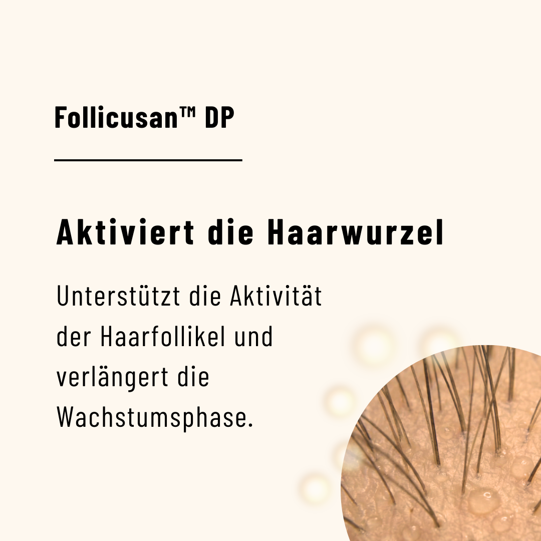 Follicusan™ DP – kann die Aktivität der Haarwurzel stimulieren und die natürliche Wachstumsphase der Haare unterstützen.